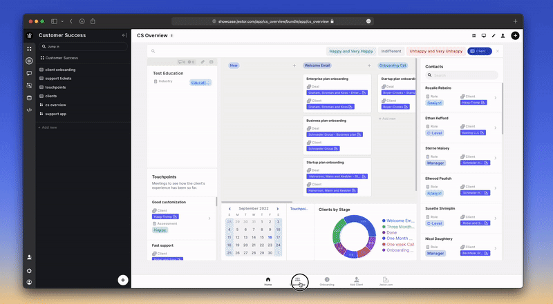 - No-Code: Jestor é uma plataforma de CRM no-code que capacita as empresas a criar soluções de CRM personalizadas sem codificação. Ele oferece uma interface visual e funcionalidade de arrastar e soltar, permitindo que os usuários criem e automatizem fluxos de trabalho, gerenciem dados de clientes e rastreiem atividades de vendas. O Jestor se concentra na facilidade de uso e na flexibilidade, permitindo que as organizações adaptem seus sistemas de CRM aos seus requisitos específicos.