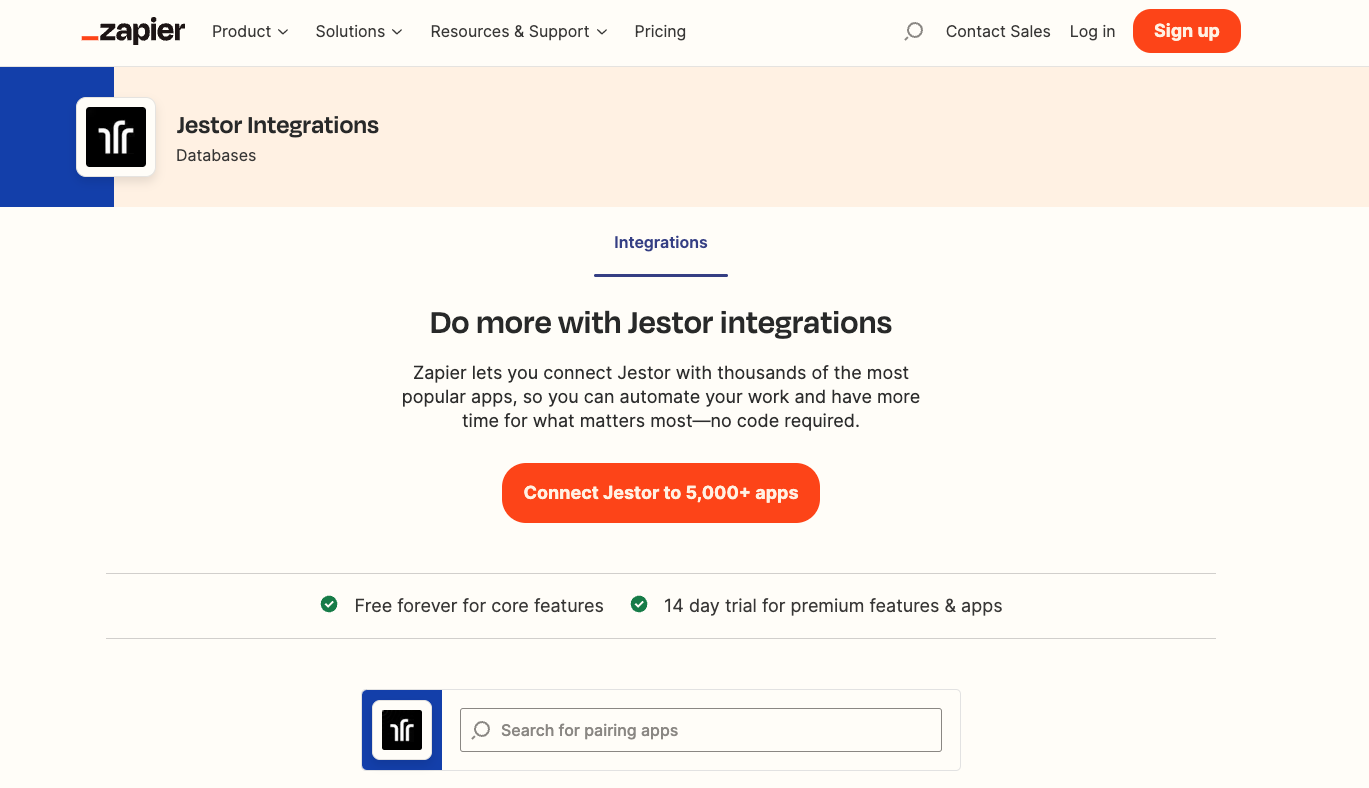 - Jestor: É uma plataforma de banco de dados e automação de fluxo de trabalho All-in-One altamente versátil. Ele oferece uma interface de arrastar e soltar com uma ampla variedade de campos e componentes pré-construídos para personalizar e criar seus fluxos de trabalho exclusivos. O objetivo é fornecer uma plataforma centralizada para que as equipes planejem, executem e monitorem seus processos com eficiência.