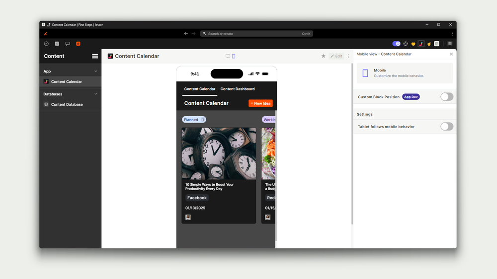 If you prefer more control over the mobile layout, Jestor offers the option to manually arrange the mobile view. You can resize and reposition components as desired without affecting the primary desktop layout.