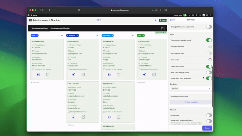 With this new functionality, you can customize your process more, being able to edit phase conditionals, add a cover, change the card color, and much more.