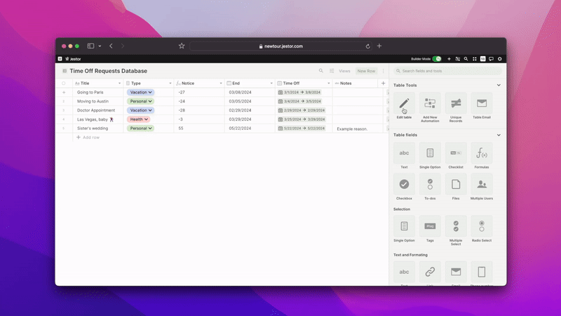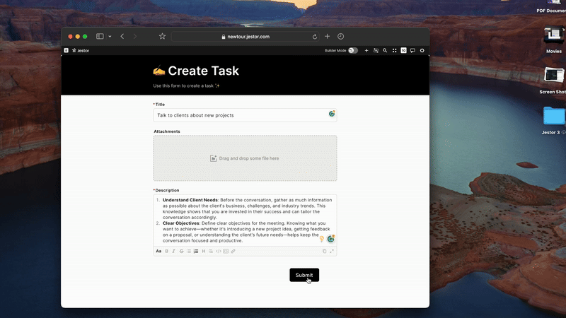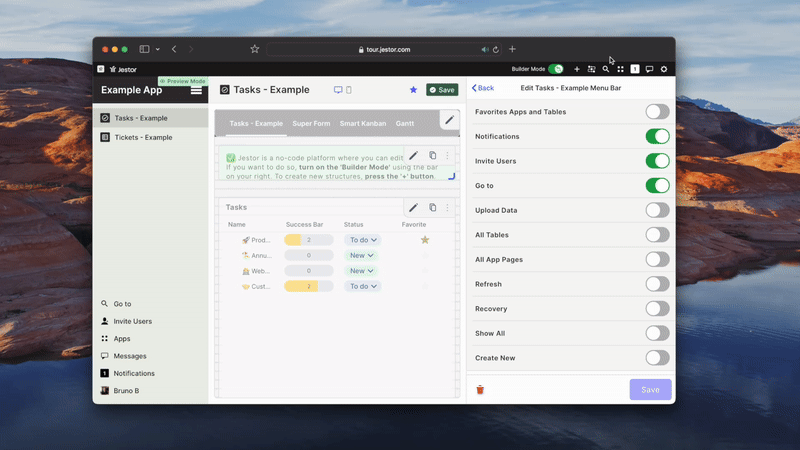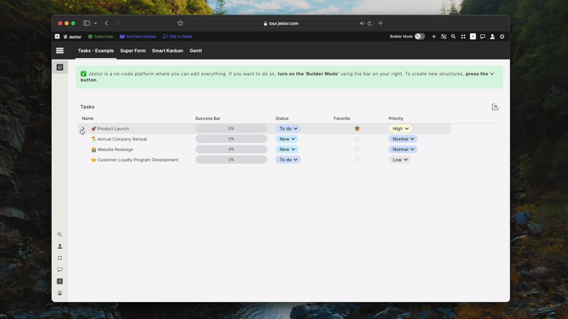 Favorites were previously handled incorrectly. We used them to prevent people from losing tables and apps they had just created, so they were automatically added to favorites. Weโve fixed this issue and added the ability to favorite records, allowing you to focus on specific tasks until theyโre done. Additionally, weโve added favorites to the menu bar so members can customize their experience individually while using Jestor.