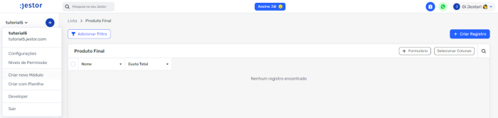 Vamos começar, então, pelo ponto número (1). Podemos fazer isso acessando a área de desenvolvimento do Jestor no menu principal na lateral esquerda: