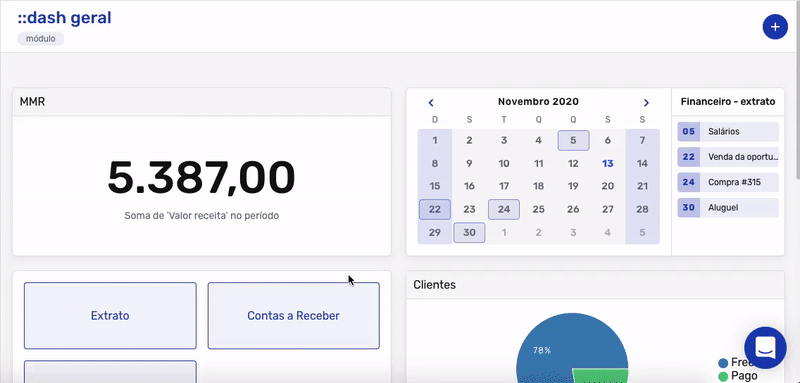 Sejam gráficos, indicadores, calendários, ou listas, algo muito legal em dashboards é a possibilidade de cruzar informações de quaisquer partes do sistema. Assim, você acompanha exatamente o que e como quiser e tem uma visão geral de seja um time ou toda a sua empresa.