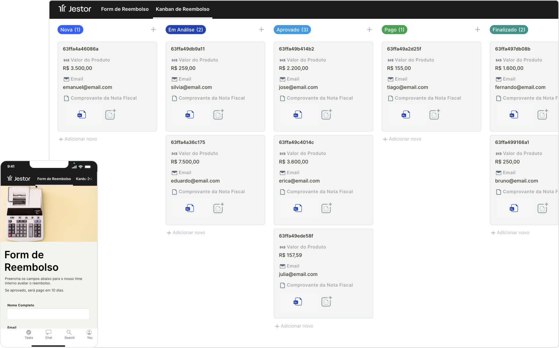 Todas as respostas serão salvas automaticamente nas tabelas do seu Jestor. Ele pode criar automaticamente um cartão em um kanban sem a necessidade de integração com qualquer outra ferramenta.
