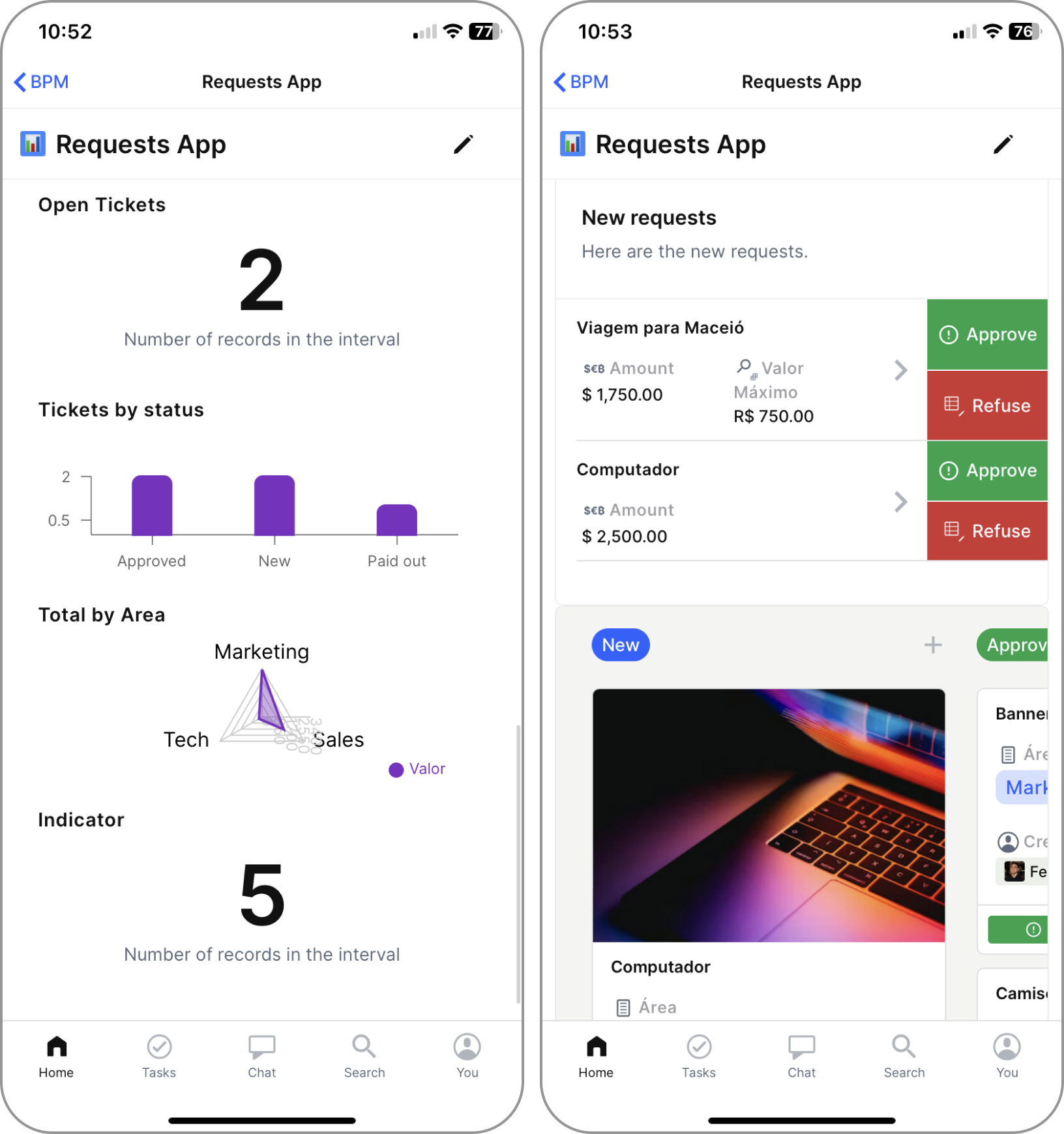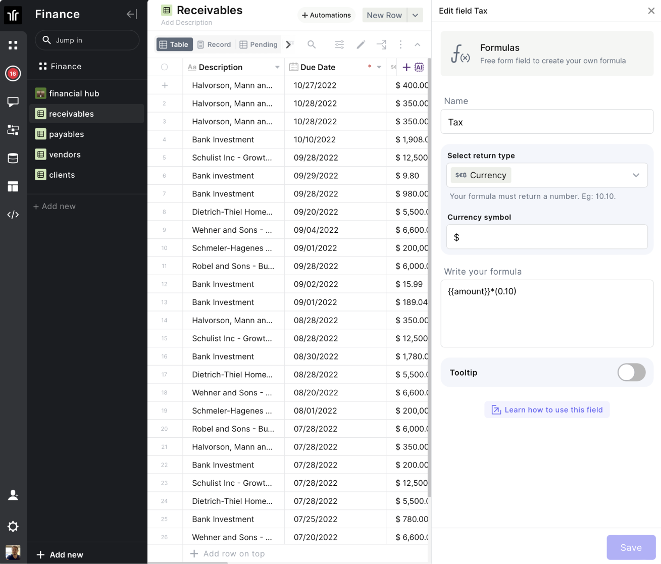Add simple formulas as easily as a spreadsheet or add indicators on your App. Create powerful calculations with Low-Code.