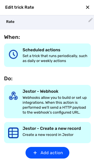 Jestor - Create a new record” action. You’ll only need to set up two things: