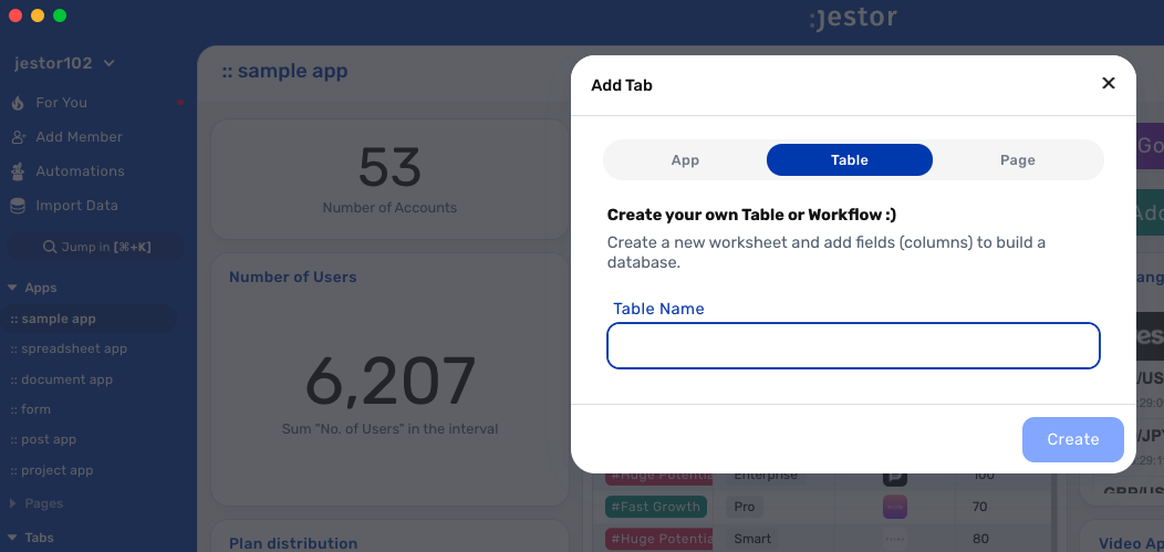 Jestor is a no-code tool to build scalable internal systems, fast. You can create apps, automations, workflows and databases tailor-made for your company. Unlimited users, records, apps and automations.