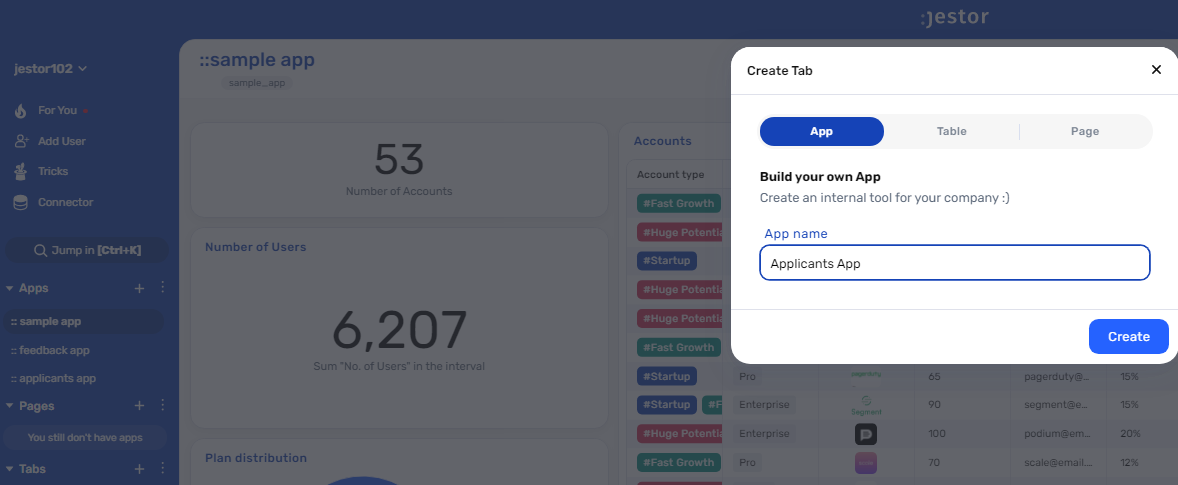 appin Jestor and name it “Applicants App”. We’ll build one