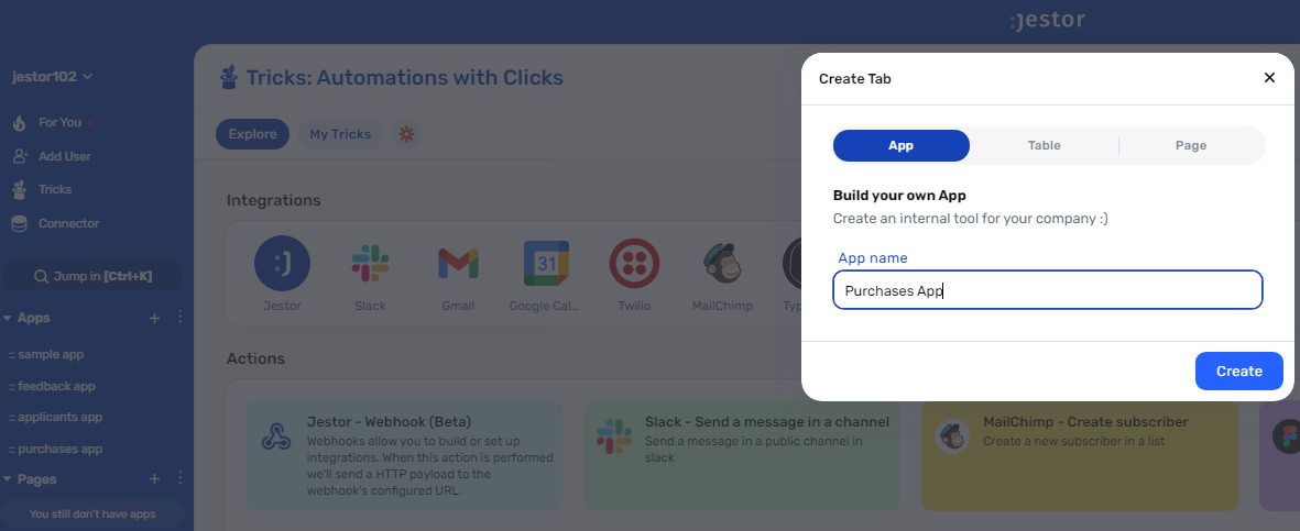 Jestor is a no-code tool to build scalable internal systems, fast. You can create apps, automations, workflows and databases tailor-made for your company. Unlimited users, records, apps and automations.