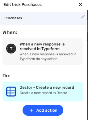 Jestor - Create a new record” action. Select the “Purchases” table and match the information coming from the form to the fields in the list. Now, everytime someone submits the form, the information will be automatically sent to Jestor.