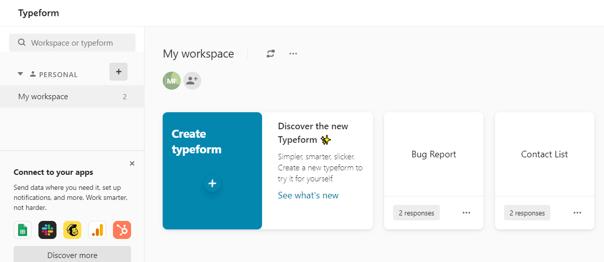 Typeformand create a new form with all the information you’ll need from the submitter. In the case of a bug report, this means contact information that helps you when reaching out to them (such as name and email address), and also at least one text field for a description of said bug. You may also create other fields for interests, such as a category or product in which the bug was found.