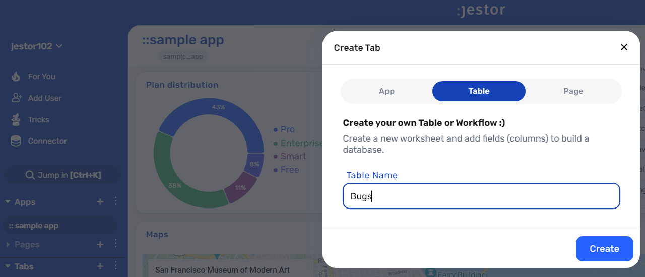 Create a table in Jestor, name it “Bugs”, and add all the fields you’ve created in the form in Step One. The idea here is to get the information submitted and organize it into an easy to use database. You can also create a
