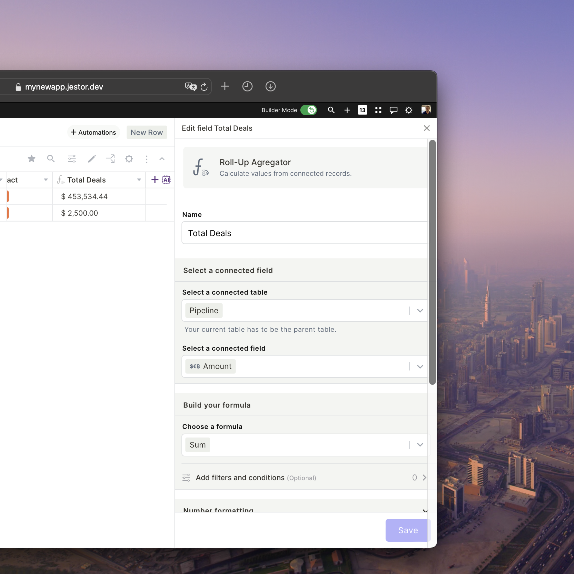 Adicione filtros para criar fórmulas e adicionar filtros a registros conectados, como: