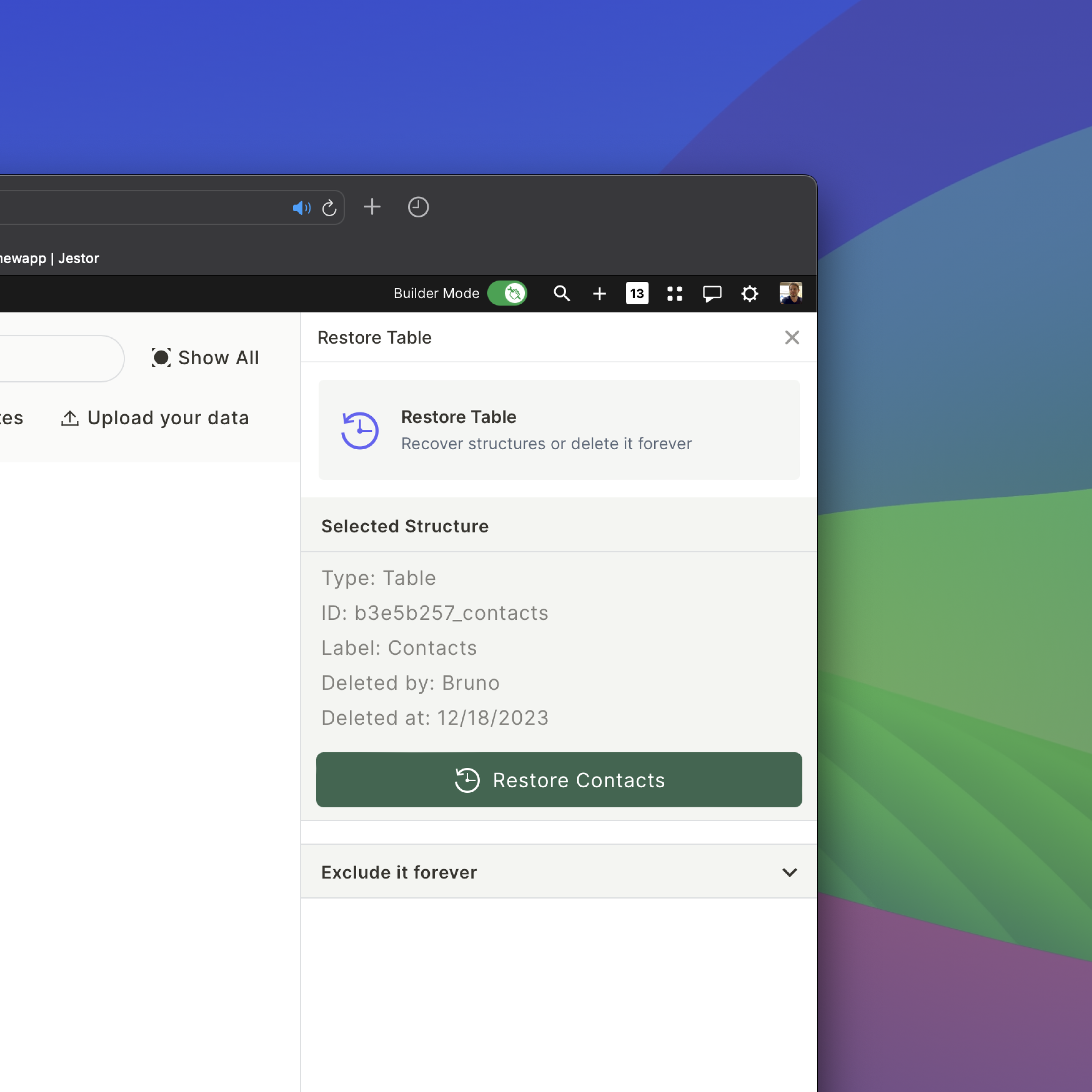 Tivemos alguns casos de usuários deletando tabelas e aplicativos por engano. Agora, eles podem restaurar sem a necessidade de falar com nossa equipe. É mais rápido, seguro e melhor para todos.