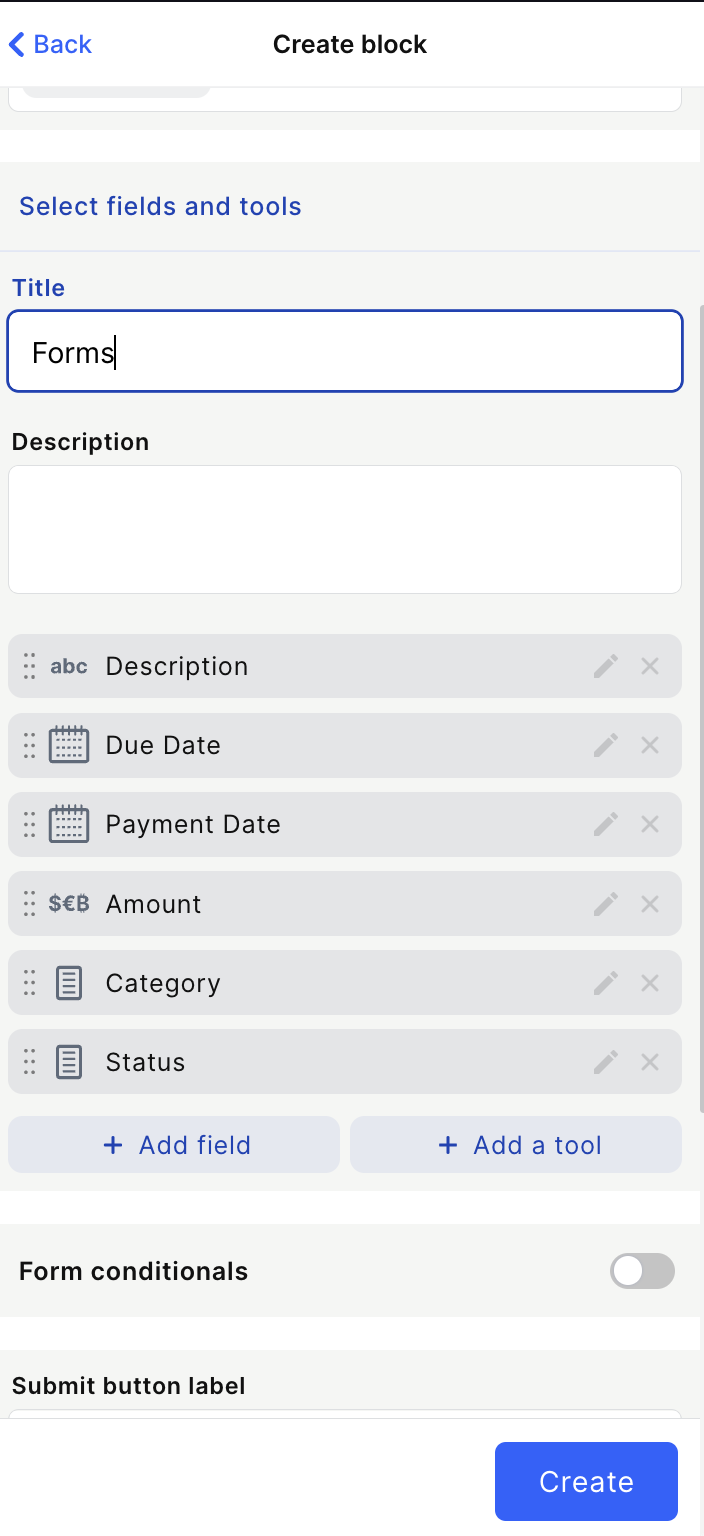 - Go to the app you've created and click on the "+" button or press (F) and this will open the component creation page