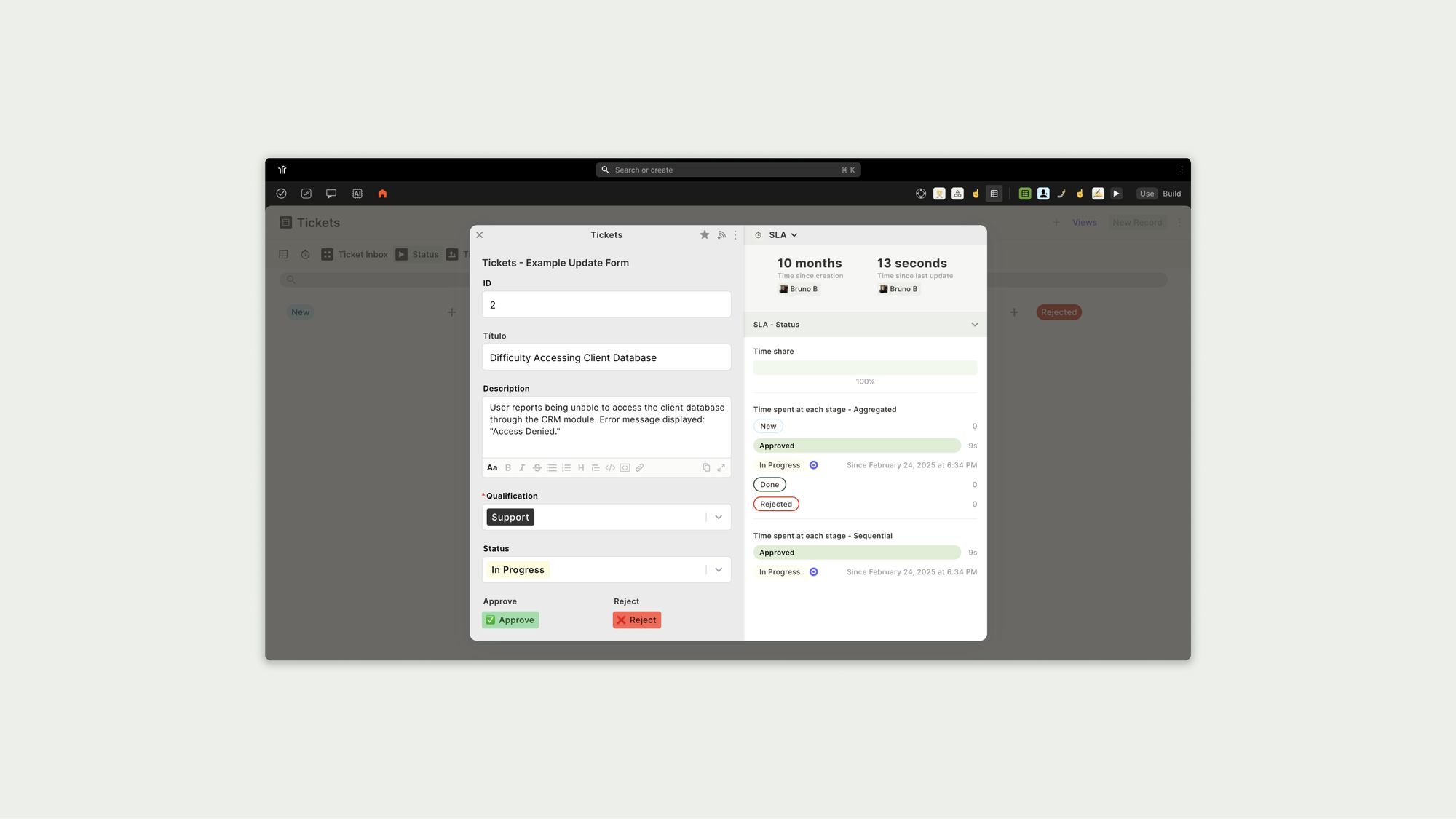 Exemplo de uso: Gerenciamento de chamados técnicos que se conectam diretamente aos projetos de desenvolvimento, garantindo resolução rápida e eficaz.