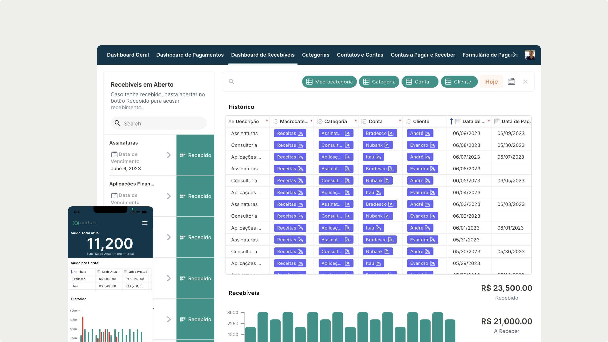 Controle os prazos e custos de suas obras de maneira eficiente. Ferramentas para monitoramento de orçamentos, despesas e cronogramas em tempo real, ajudando a manter seus projetos dentro do orçamento e prazo estipulados.