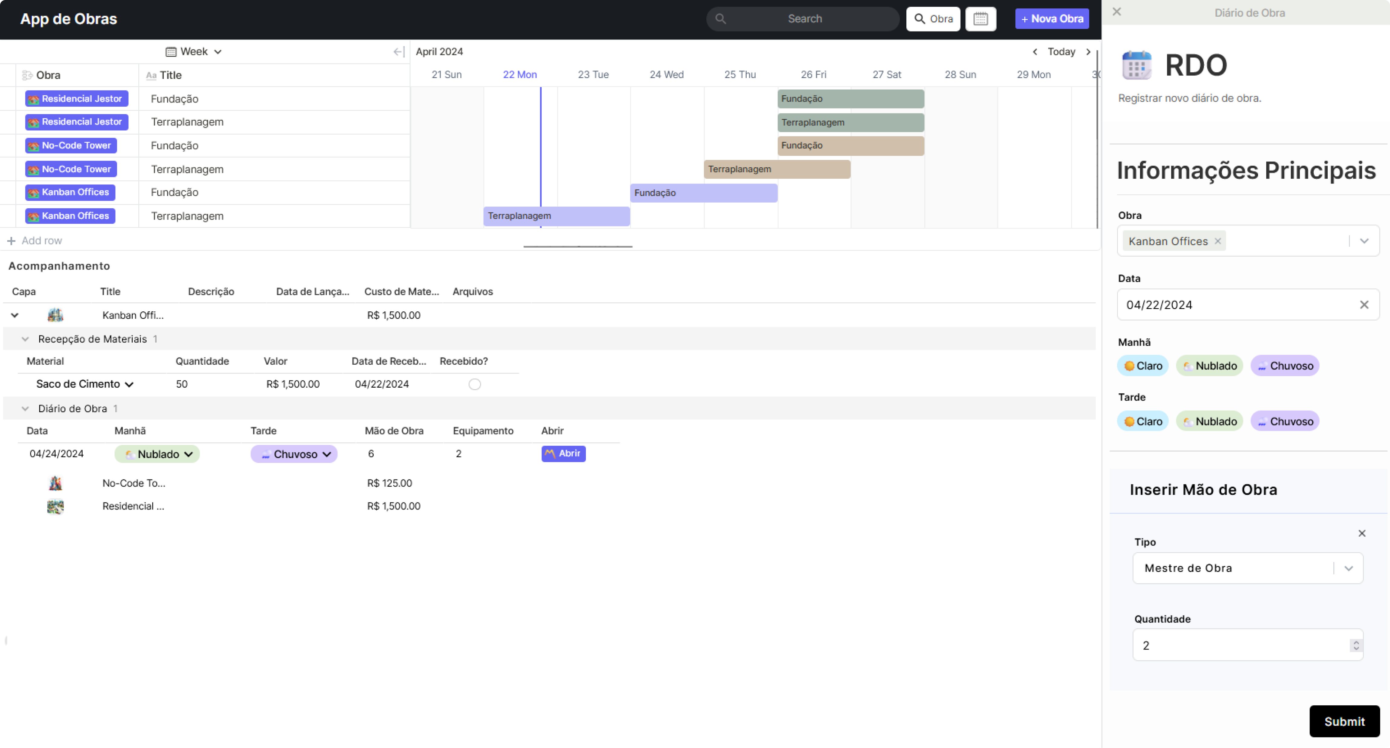 RDOs e Diários de Obra