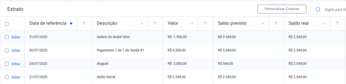 Agora, estaremos com o saldo negativo desde o dia 31/07. Isso pode significar duas coisas: