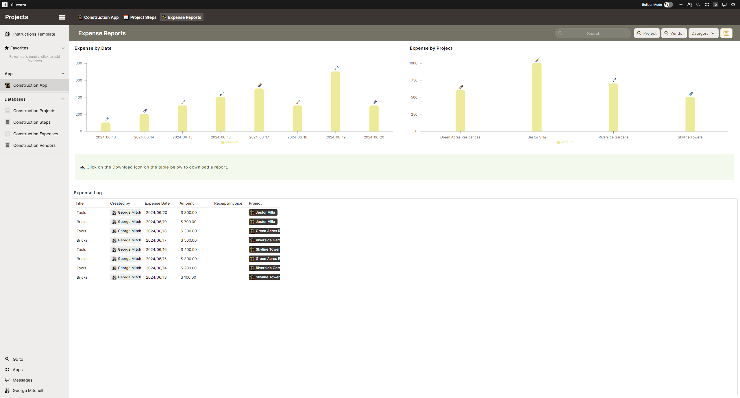 Explore the full potential of Jestor’s Construction App template with a free trial today. Transform your project management processes and see how much time and money you can save.